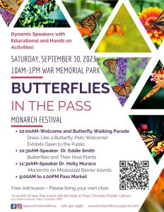 This kid-friendly annual festival includes local butterfly, pollinator and native plant experts and features hands-on exhibits, speakers and a fun butterfly costumed walking parade for all ages (including leashed pets). This event partners with the local Pass Christian Library and Saturday Market in the Pass, so families can visit local farmer and craft booths too! The festival is held under the beautiful Live Oaks of War Memorial Park in Pass Christian, MS.
